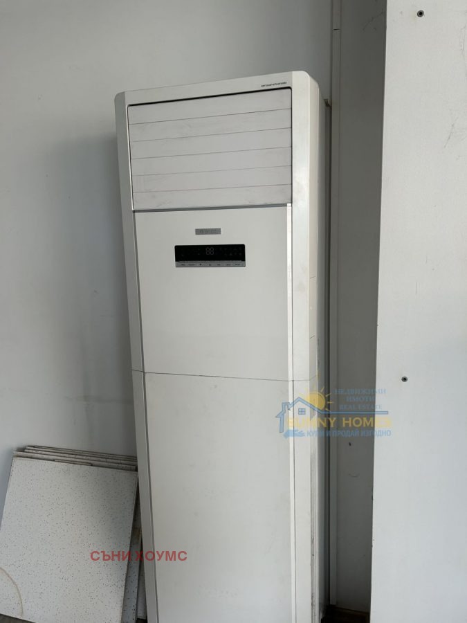 Имотът е напълно завършен с висококачествени материали и оборудван с колонен климатик с мощност 15 kW, осигуряващ комфортна температура през всички сезони.