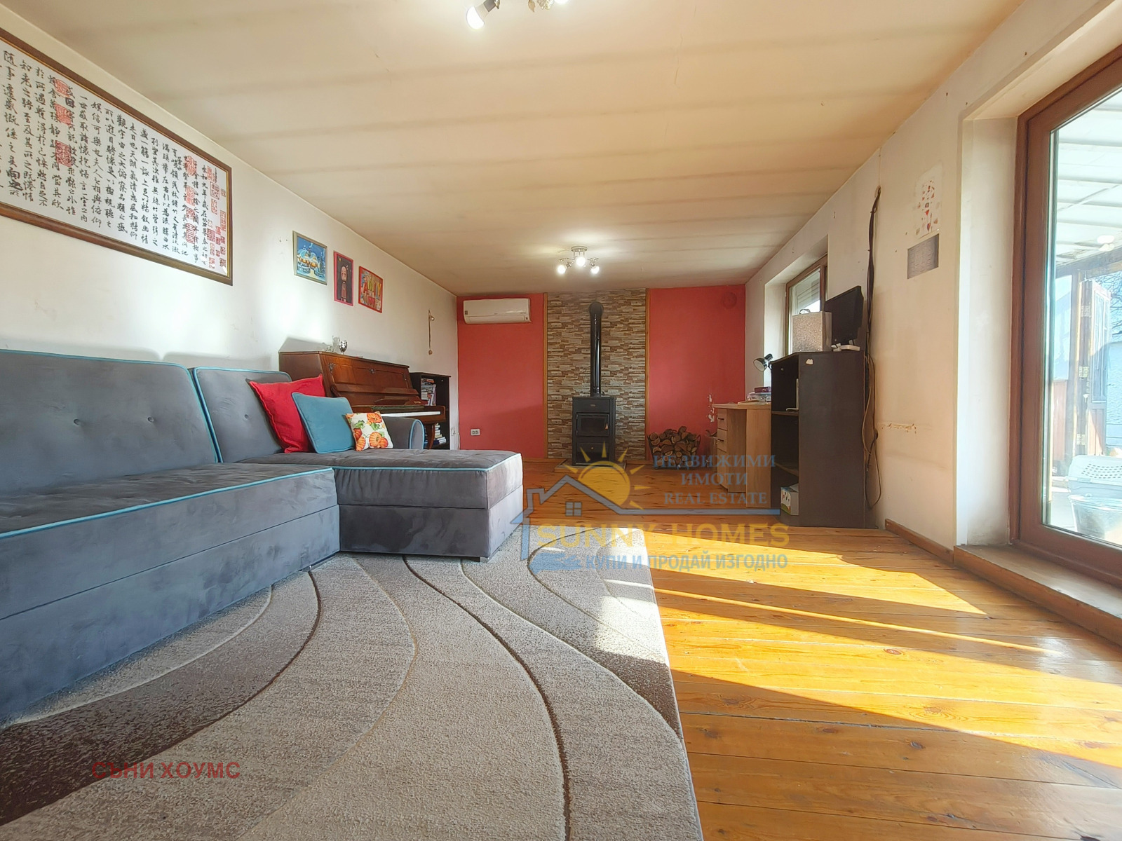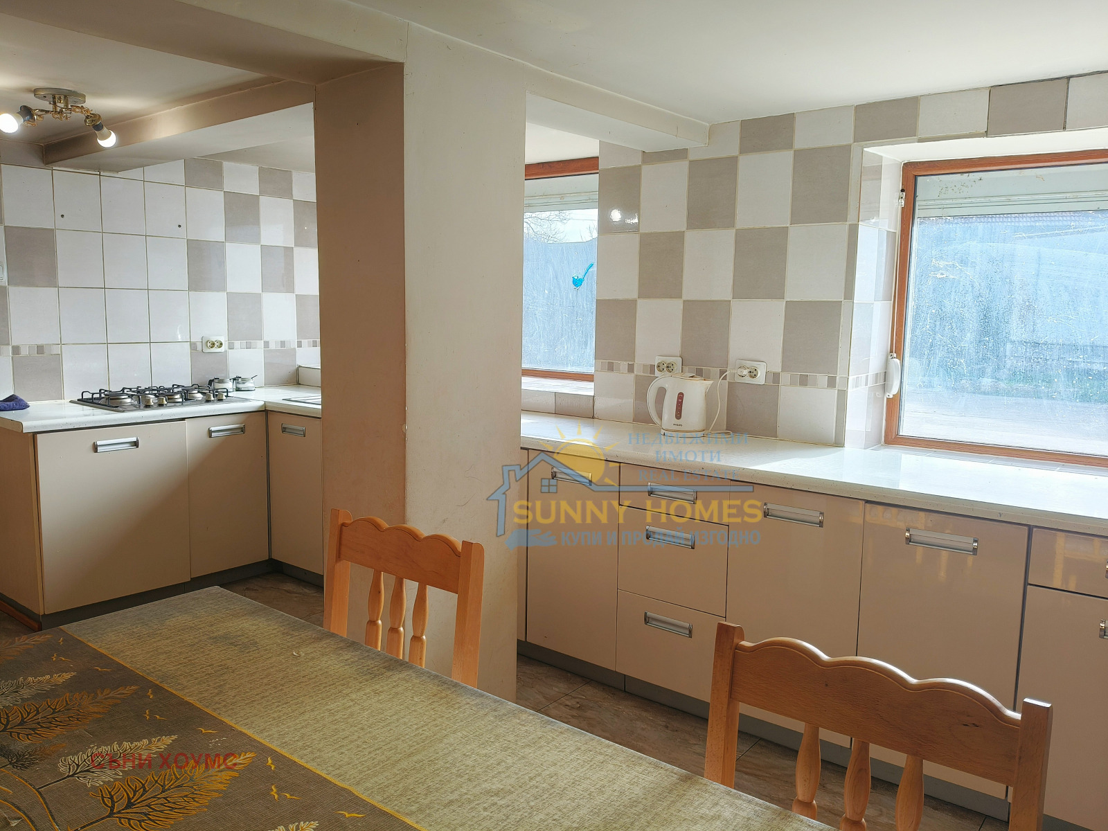 Агенция за недвижими имоти SUNNY HOMES представя на Вашето внимание двуетажна къща в с. Раданово, общ. Полски Тръмбеш. Дворът, в който е построена къщата, е с площ 1458 кв.м. Жилищната площ е около 180 кв.м. разпределена в два жилищни етажа, с вътрешно стълбище, както следва: първи етаж: две стаи и просторна дневна свързана с коридор към кухнята, тоалетна и баня; втори етаж: 3 стаи, баня в една от спалните и отделна тоалетна. Имотът е ремонтиран и готов за живеене, като той се продава с наличното обзавеждане.