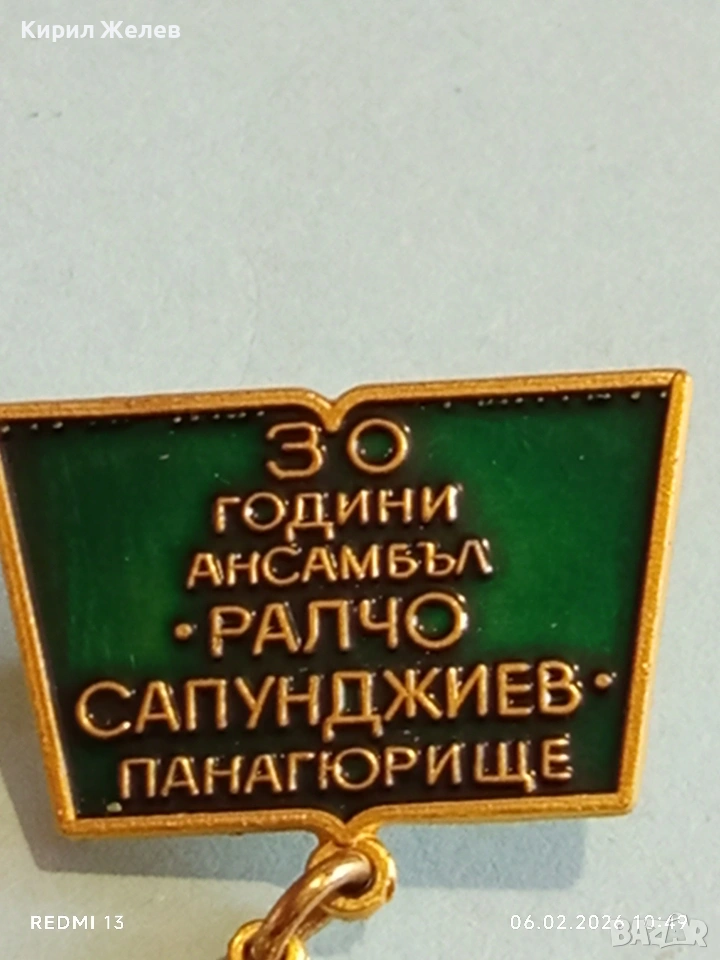 Рядка значка 30г. Ансамбъл РАЛЧО САПУНДЖИЕВ Панагюрище за КОЛЕКЦИЯ 52122