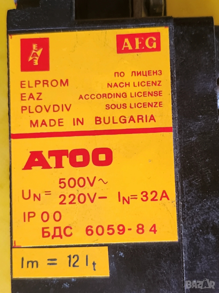 2) Термогагнитен 3-фазен автоматичен прекъсвач с моторна защита АТДД (лиценз AEG), 3NC+1NO, 500 VAC(220 VAC) 32A (6A) , бакелит- по описание на този прекъсвач...