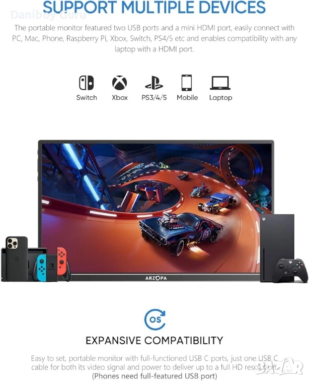 Преносим монитор Arzopa A1S
