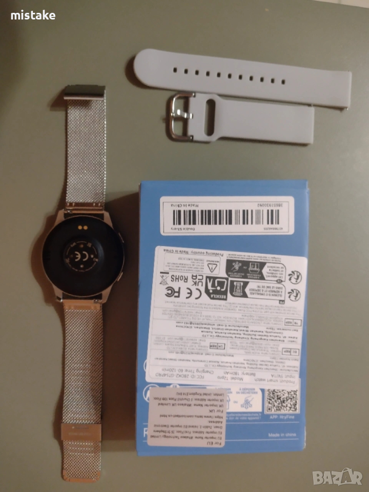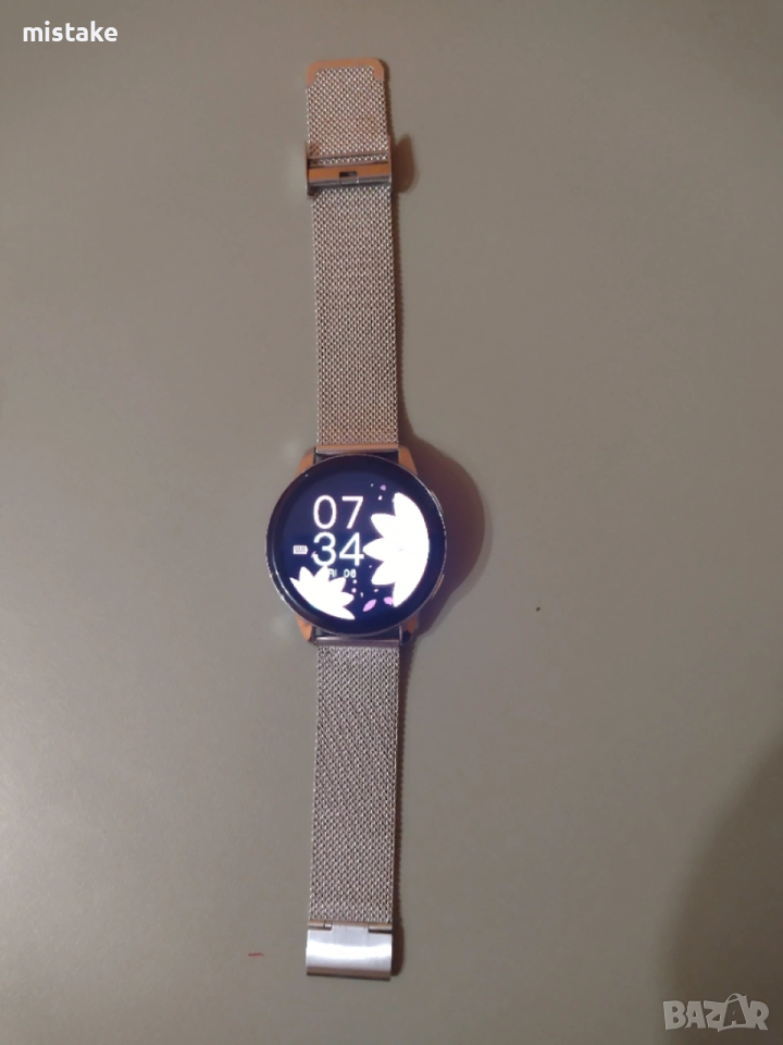 Чисто нов смарт часовник, който може да използвате, след като свалите приложение. Има две каишки, едната силиконова, другата стоманена. В комплект със зарядно. Може да избирате от 4 варианта за екран.