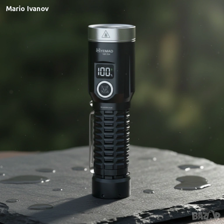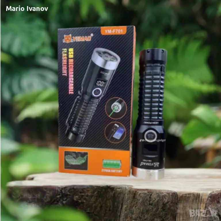 LED фенер YEMAO YM-F701 със зелен лазер - USB и дисплей → Обява 53379146