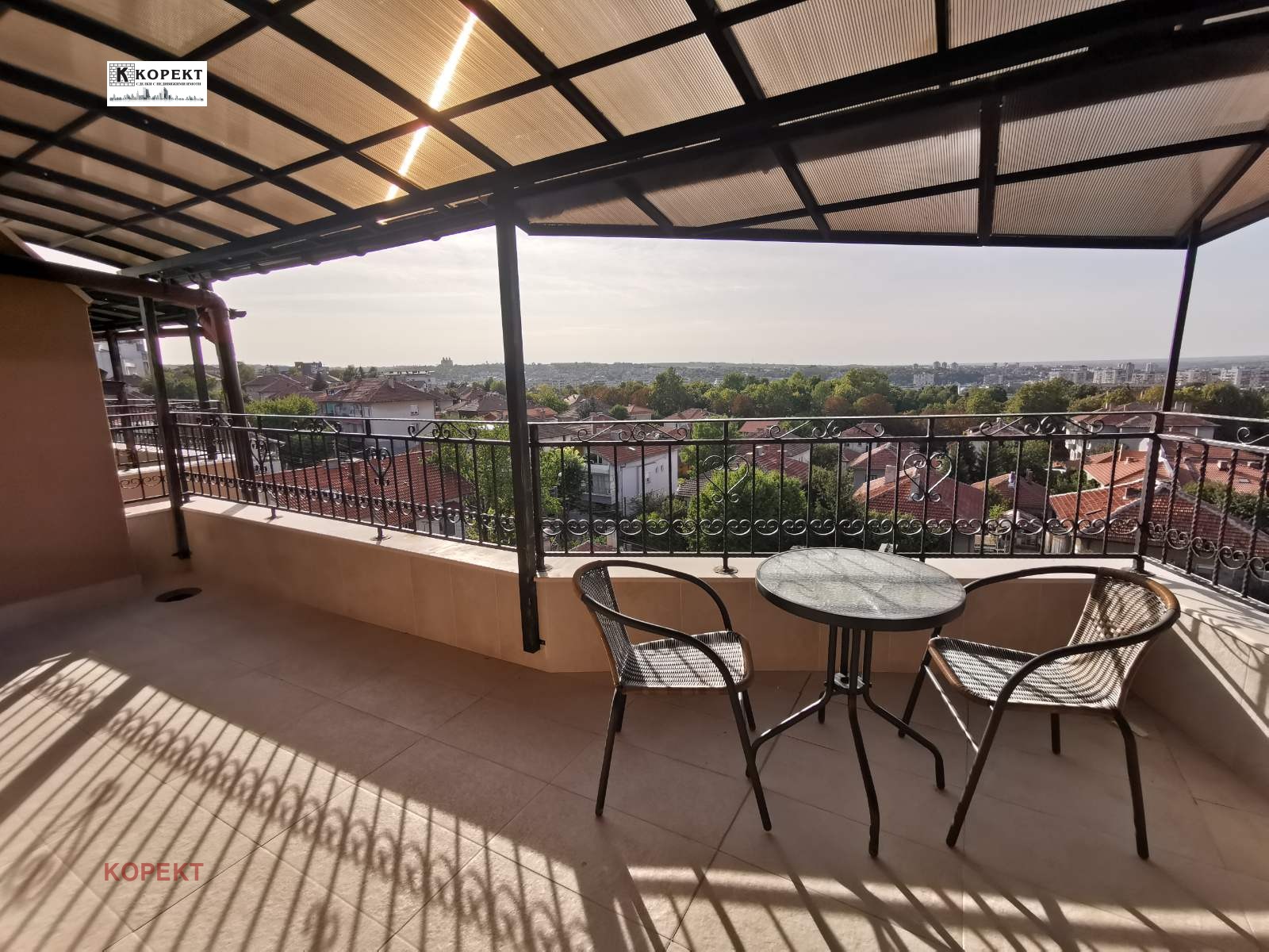 Имотът е със статут ателие и се намира в нова сграда на ул. Климент Охридски 48, стр. 2020год., с ТЕЦ, асансьор, хубави общи части. Състои се от трапезария, спалня, кухненски бокс, баня с тоалетна, голяма тераса с гледка към града. Площ - 59,71кв.м., чиста вътрешна квадратура без терасата (светла площ 33кв.м.). Напълно обзаведен, с ел. уреди, с изложение: запад. Добра доходност от наем. Възможност за покупка на паркомясто.
