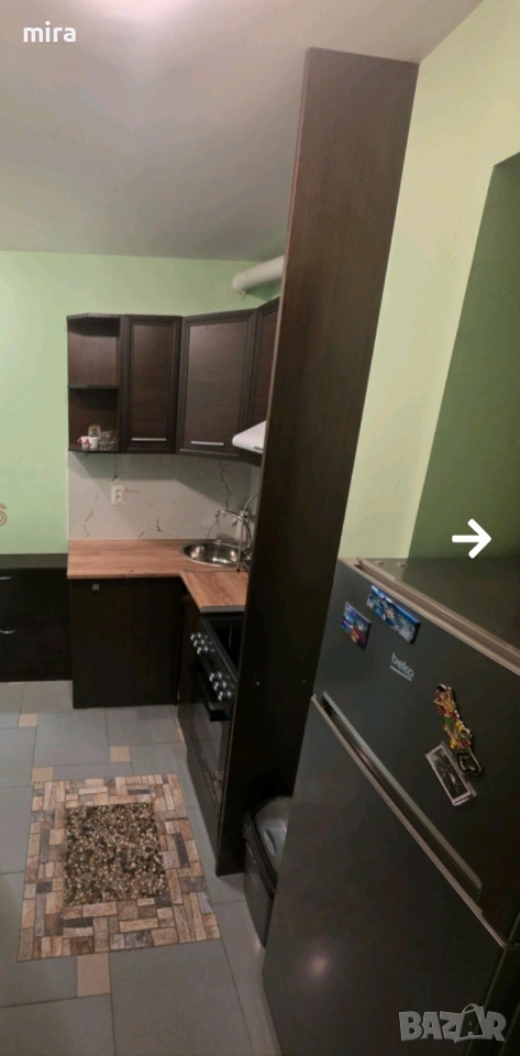 РАЗПРЕДЕЛЕНИЕ: Входно антре с кухня, спалня с разтегателен диван, който може да бъде смене с по избор на клиента за моя снетка, баня с тоалетна и балкон