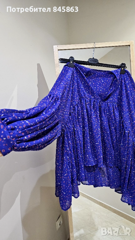 Страхотна риза с обемни ръкави, наситени цвят, без размер ,става и за голяма гръдна обиколка.