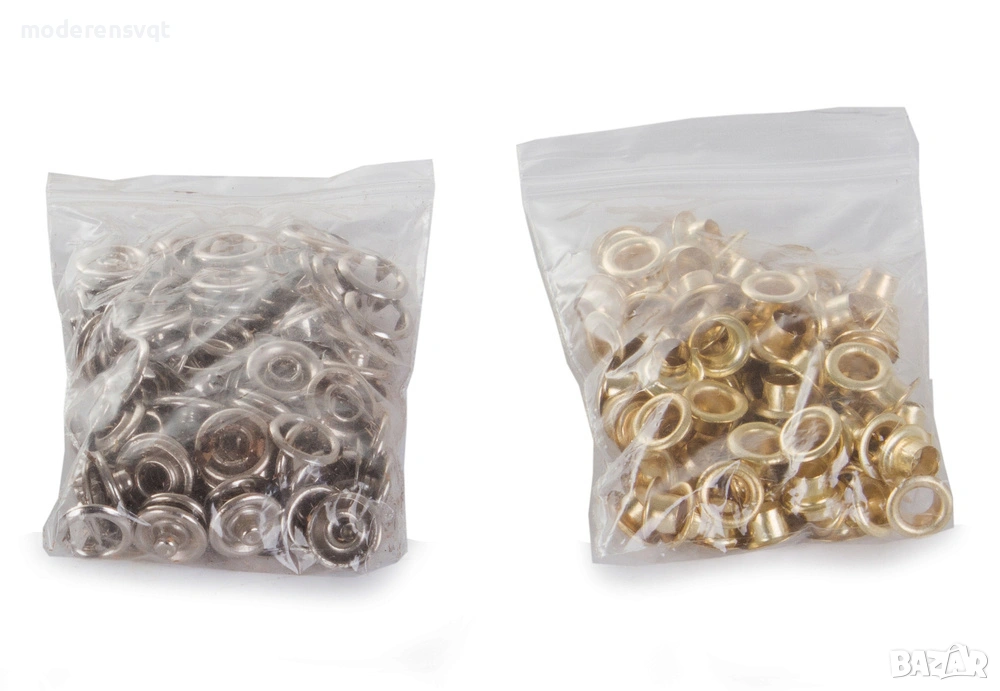 В допълнение, комплектът включва набор от аксесоари: 100 броя нитове, комплект от 100 броя опъващи механизми