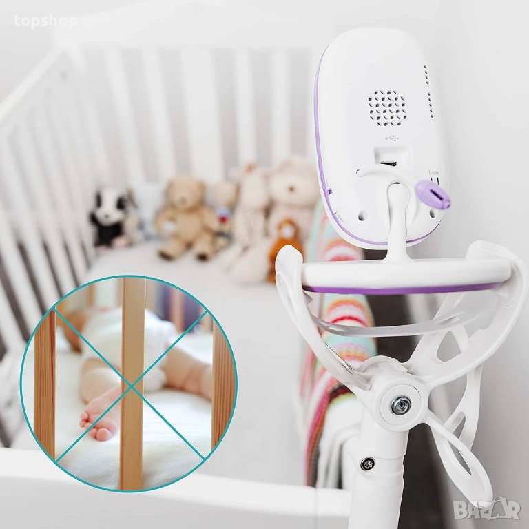 360-градусова ротация: Специалната „щипка“ на върха позволява да завъртите камерата под идеалния ъгъл, за да виждате бебето отлично.