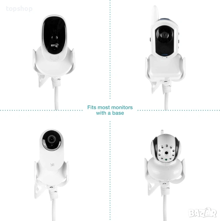 Универсална: Съвместима с почти всички марки бебефони на пазара (Motorola, Samsung, Philips Avent и др.). Захваща камери с основа до 7 см.