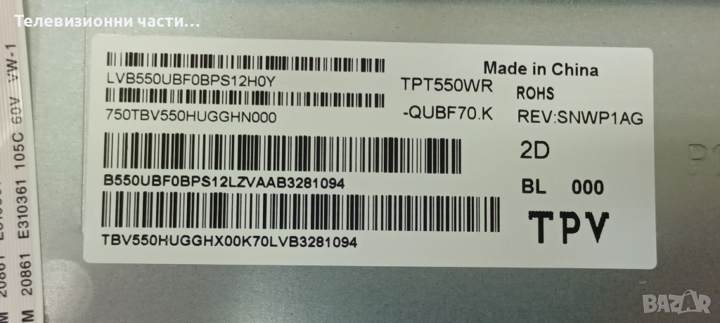 Philips 55PUS8007/12 със счупен екран.Панел TPT550WR-QUBF70.K REV:SNWP1AG.Матрица HV550QUB-F70 Rev.2.0
