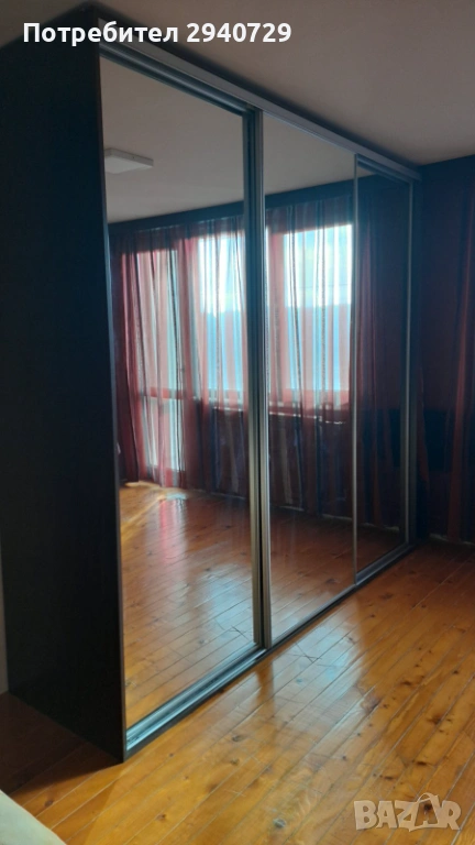 Трикрилен гардероб с плъзгащи огледални врати,лостове за закачане,рафтове.Височина 224см,дълбочина 66см,дължина 240см.Материал Пдч.Налична спалня от същата серия.При интерес цената може да се договори.