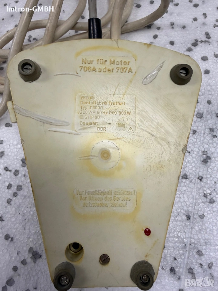 Симисторният регулаторът е произведен в ГДР. Предназначен е за регулиране на обороти на ел. двигатели на зъботехническа машина с мощност до 300W.