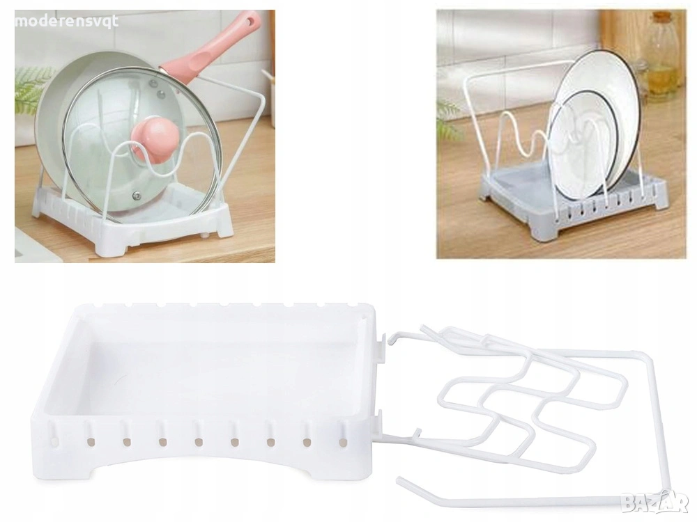Сушилникът ви позволява да организирате различни кухненски аксесоари, като капаци за тенджери, тигани, тенджери, дъски за рязане, чинии, гювечи и др. Сушилникът е оборудван с отцедник, така че кухненските аксесоари да могат да изсъхнат свободно след измиване, преди да ги приберете в шкафа.