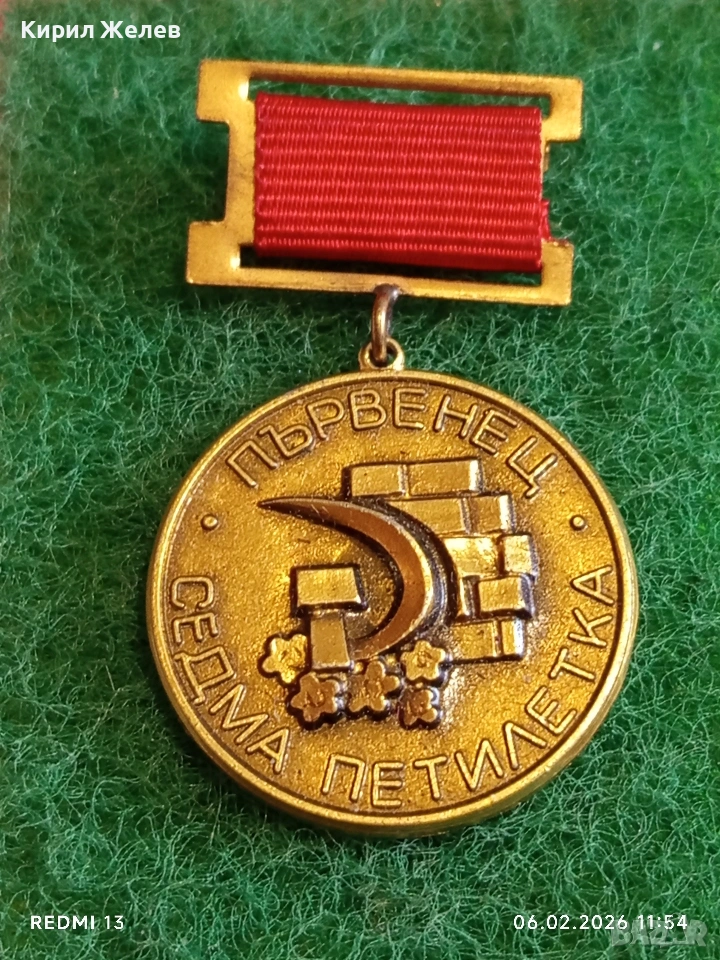 Медал от соца ПЪРВЕНЕЦ СЕДМА ПЕТИЛЕТКА за КОЛЕКЦИЯ 53625