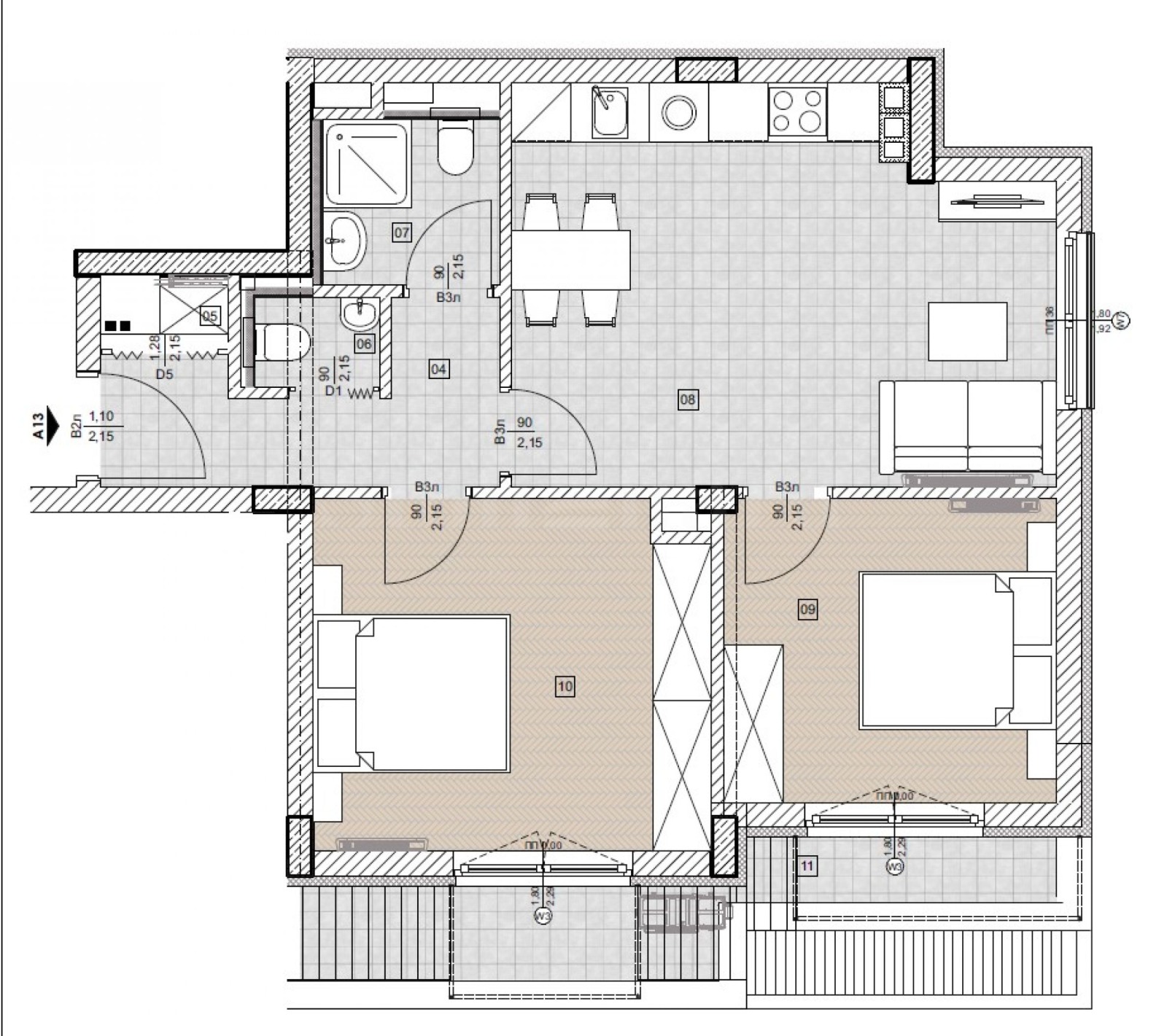 В строителството са използвани материали от премиум клас, осигуряващи дълговечност и лесна поддръжка на сградата във времето. Архитектурният план предвижда подземно ниво с паркоместа.