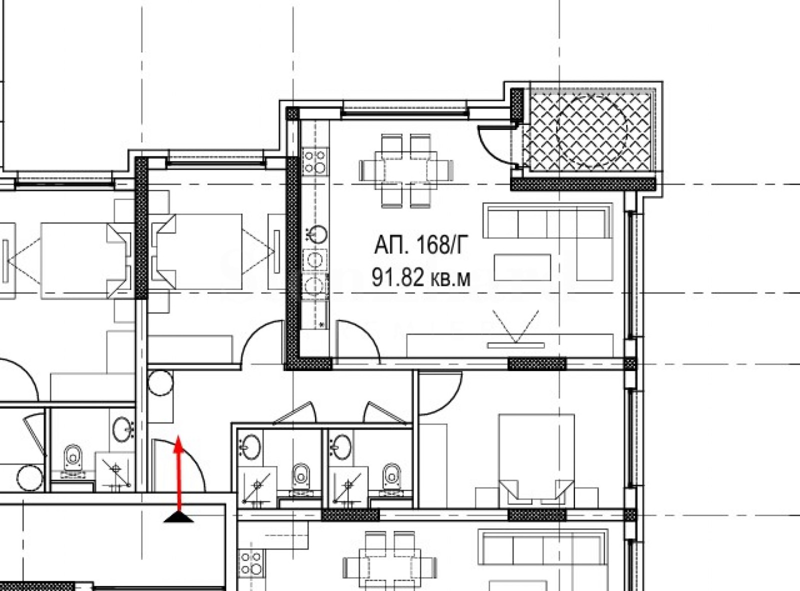 Имотът е разположен на 3-ти етаж и е с обща площ 106.09 кв.м, чиста площ - 91.82 кв.м, върху които са разпределени: антре, две бани с тоалетни, дневна с кухня и тераса, две спални. Жилището се издава в степен на завършеност по БДС, с петкамерна PVC дограма Rehau, с троен стъклопакет и блиндирана входна врата.