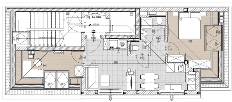 Конкретната оферта е за тристаен апартамент, намиращ се на 9-и етаж и обща квадратура 102.63 кв.м.