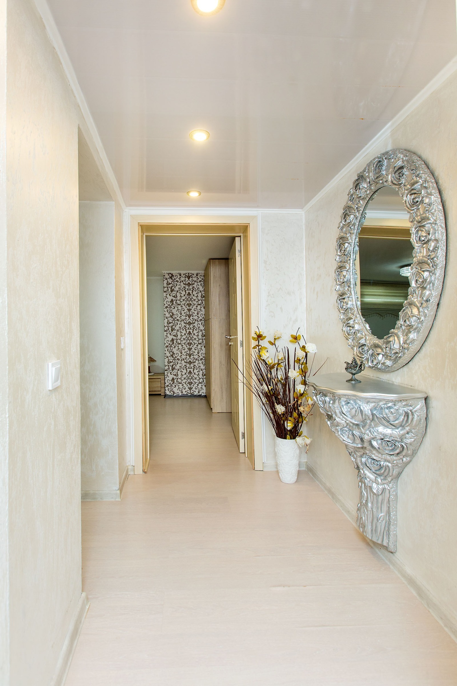 -Коридор ( 2,26 м²) с елегантни огледални акценти и стилна конзола.