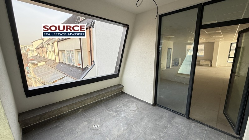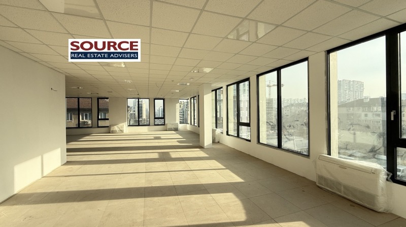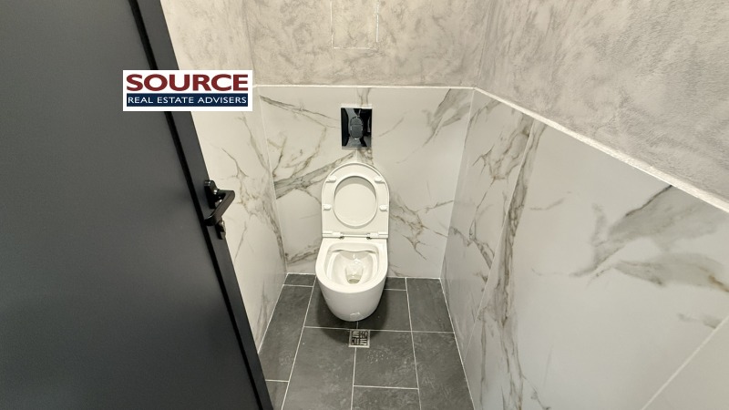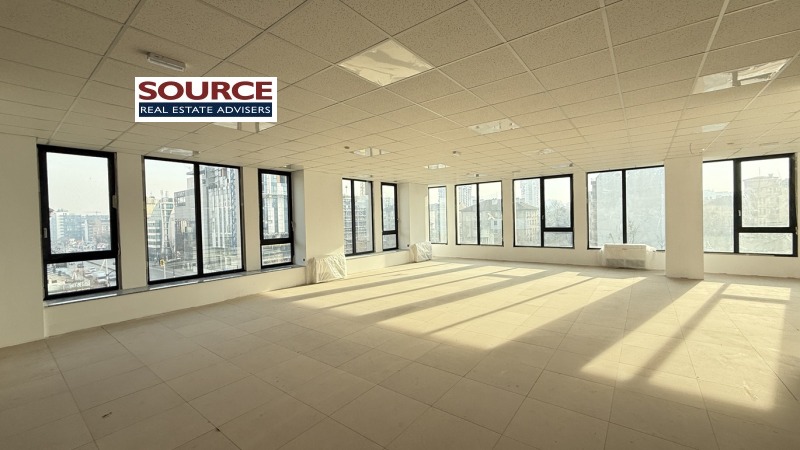 2. Разпределение: 1 голямо Open space помещение, кухненски бокс, сървърно помещение, 2 wc, тераса. Офисът може да бъде изцяло с Open space разпределение или допълнително преграден според изискванията на Наемателят.