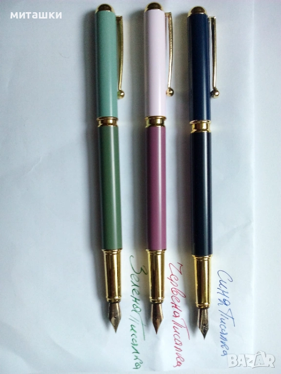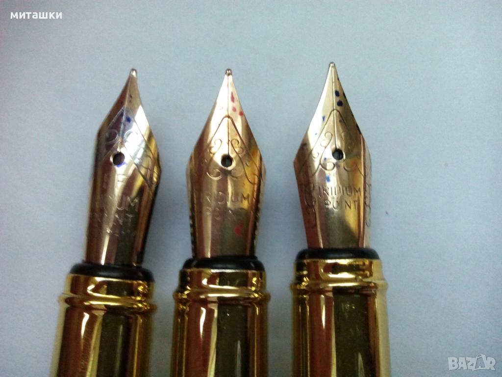 Комплект 3 броя цветни писалки иридиум поинт , зареждане с тип винтово беталце , в ново състояние - за 12 € всички .