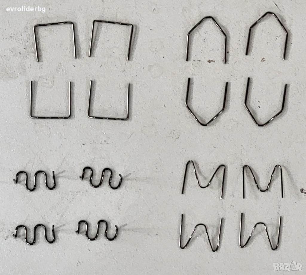 4-ри модела Скоби/Телчета за запояване и ремонт на много видове пластмаси. Пакетирани по 100броя в пликчета с опция за многократно отваряне.