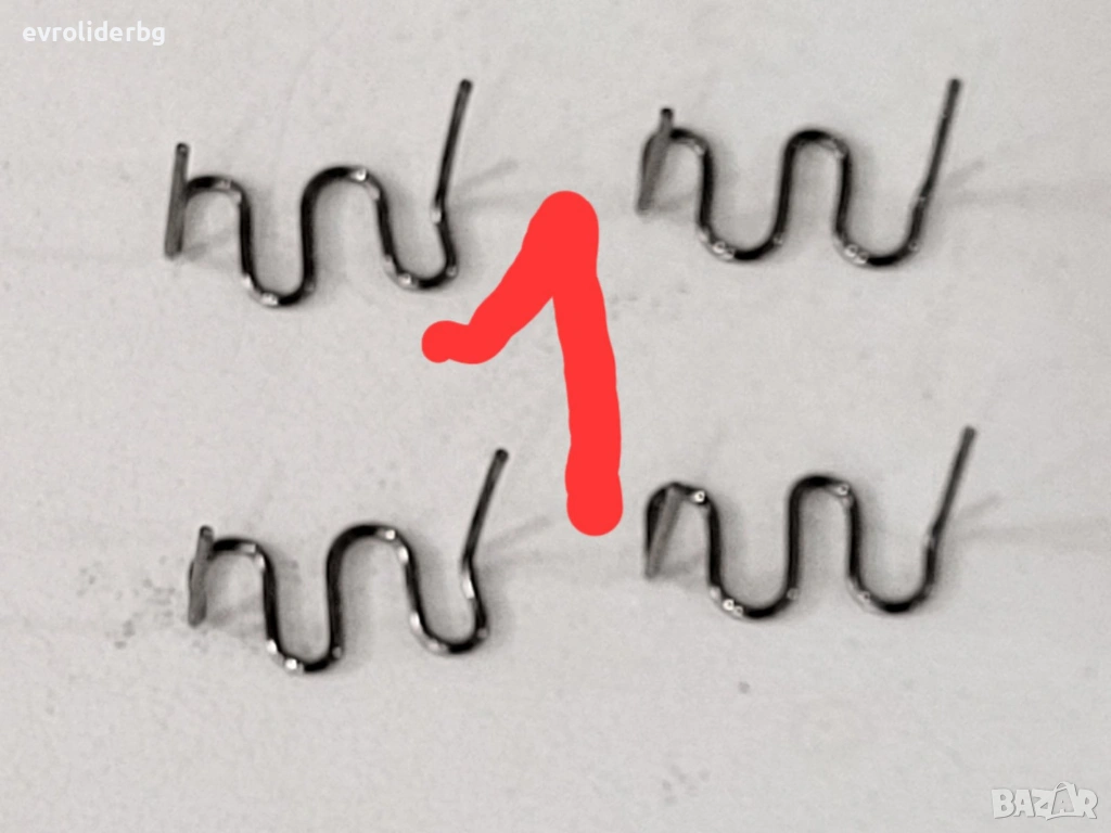 1) Снимка с надпис №1 - Скоби "S"- ВЪЛНООБРАЗНИ, Подходящи за големи и извити пукнатини. Материал: Неръждаема стомана - Дебелина: 0.8мм. Тегло на продукта: 12грама. 100броя в пакет.