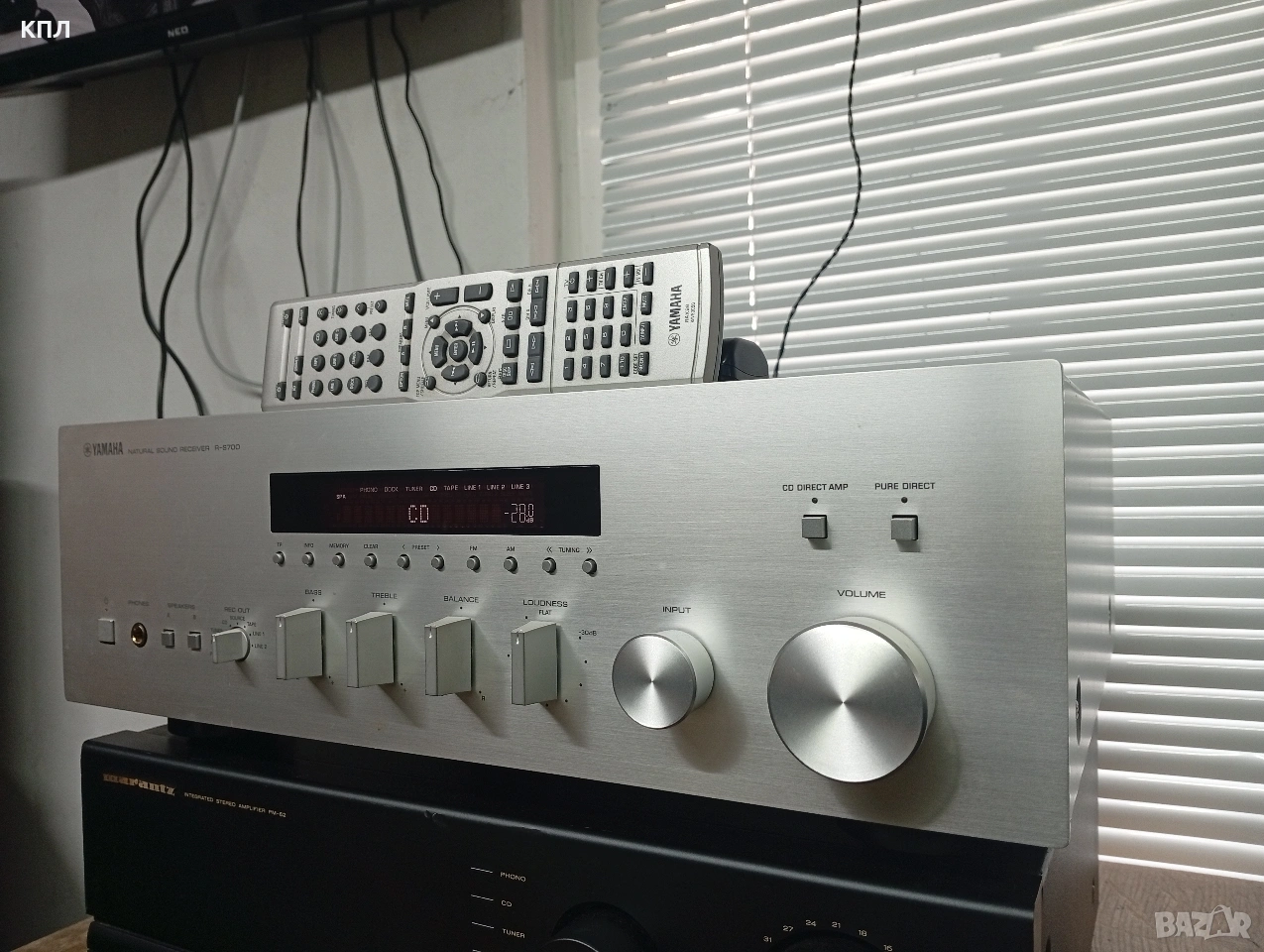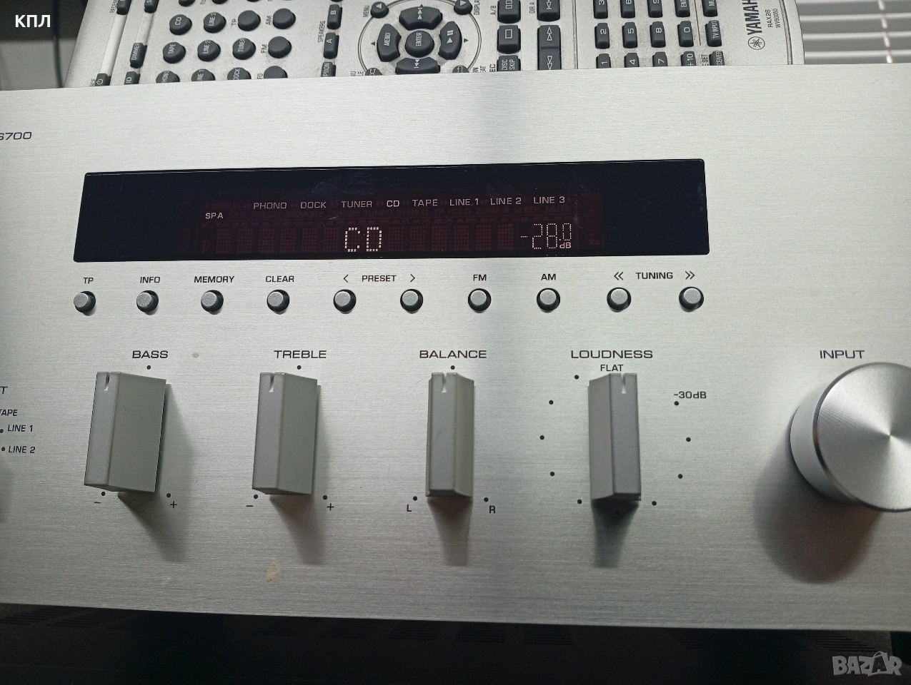 Yamaha R-S700 в перфектно техническо и визуално състояние с оригинално дистанционно управление висококачествен стерео ресийвър (усилвател с вградено радио) с мощност 100W на канал при 8 ома, предназначен за любителите на музиката, които търсят изчистено двуканално аудио изживяване.Внос от Германия при интерес може да се види и тества на място.