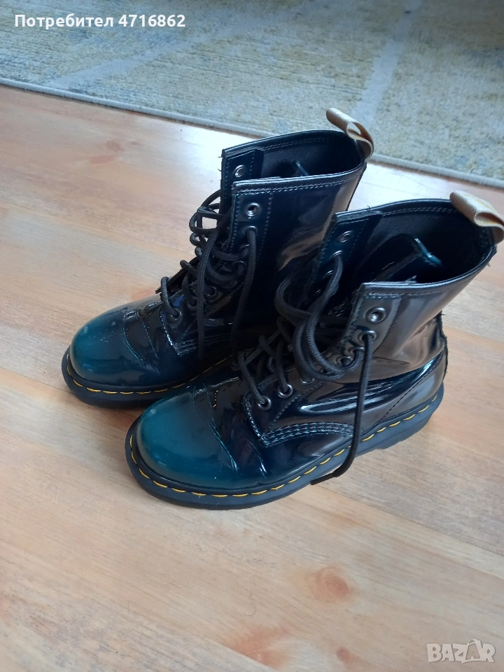 Истински Doc' Martens кубинки. Черно с зелени оттенъци. Много запазени. Размер 36. На последната снимка- sceen shot - от бг. сайт от днес...