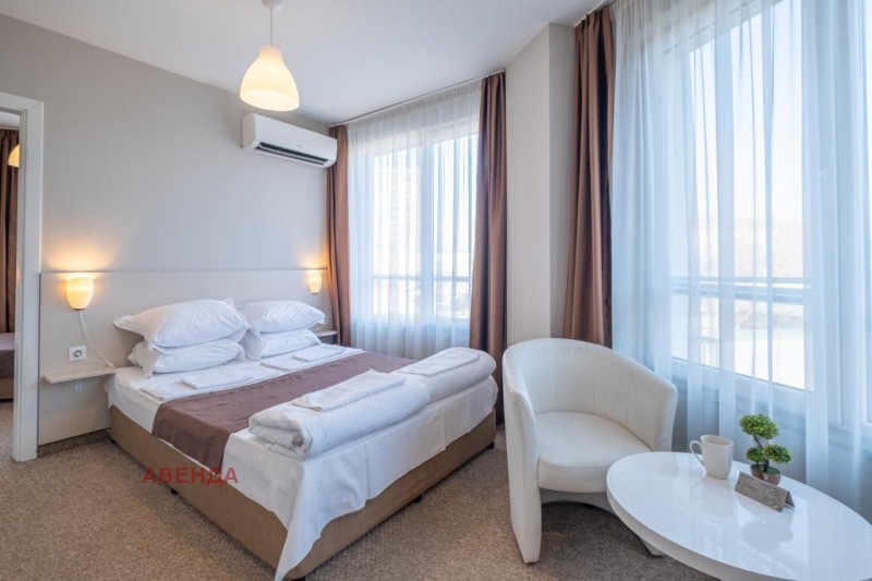 Агенция за недвижими имоти АВЕНДА предлага самостоятелна сграда на тихо и комуникативно място в Студентски град. Сградата се състои от сутерен, партер и 5 етажа с 13 обзаведени апартаменти, всеки с по 2 стаи. РЗП 950 кв.м. + 225 кв.м. земя и паркинг. Сутеренът е устроен като склад и котелно с ел. бойлер и котле на пелети за отопление на общите части на сградата и осигуряване на топла вода. Допълнително е изградена и функционира соларна система за топла вода за летен сезон. Партерът включва рецепция, фоайе, помещение тип кухня, оборудвано с маси и столове, кухненски шкафове. Монтиран е и вендинг автомат, предлагащ храни и напитки. Апартаментите са изцяло завършени с висококачествени материали и са обзаведени със съвременни мебели, всеки един е със самостоятелна баня с тоалетна, осгурен е безплатен Wi-Fi интернет и телевизор с кабелна телевизия и климатик във всяка стая. На разположение в стаите са работно бюро, куфарник, кът за сядане с мека мебел. Предлага се и TOP FLOOR APARTMENT (апартамент на последния етаж тип пентхаус) с прекрасна панорама и огромна тераса над 30 кв.м., предразполагаща почивка през летния период. Всички бани са с душ кабини. Сградата е с дигитализиран достъп 24 часа в денонощието посредством магнитни карти. Всички апартаменти се отдават за краткосрочни и дългосрочни нощувки, гарантиращи постоянна пълна заетост! Перфектната локация в сърцето на Студентски град, на минути пеша от колежи, университети и др. учебни заведения, сприките на градския транспорт (линии 94, 280, 294, 413) са само на 50 метра, осигуряващи връзка с центъра на града и най-близката метрстанция Г. М. Димитров, обуславя и топ разположението на сградата.В съседство са разположени много заведения, вериги хранителни магазини, парк Мир и Дружба, а също така и спортните съоръжения на НСА. БИТОВ ТОК!