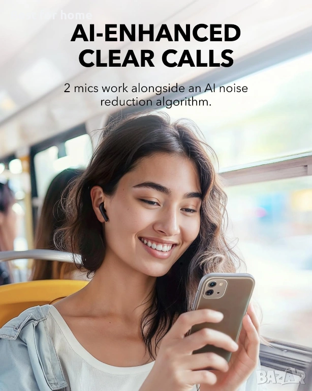 Ясно качество на разговорите: Слушалките soundcore K20i разполагат с технология за намаляване на шума, задвижвана от изкуствен интелект, която прецизно изолира гласа ви от фоновия шум. С ENC с два микрофона, поддържайте безупречна яснота на разговорите дори в оживена среда.