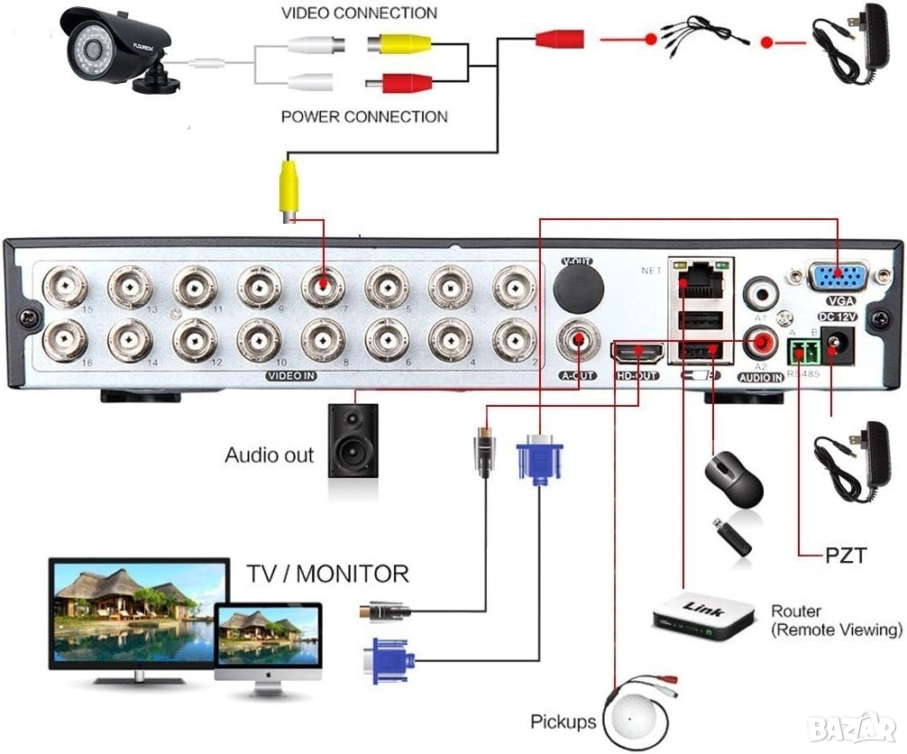 * 1 x 16-канален DVR видеорекордер