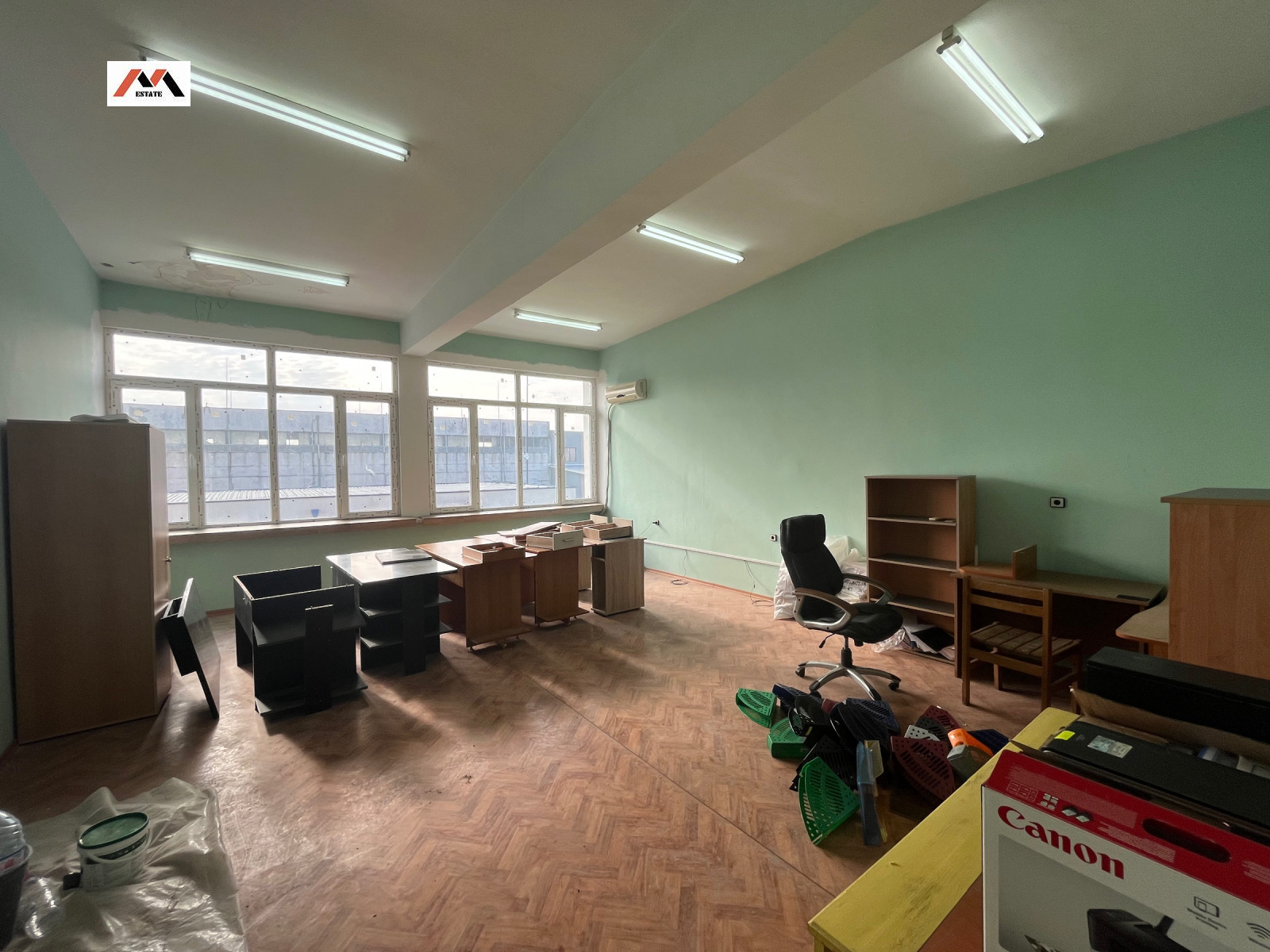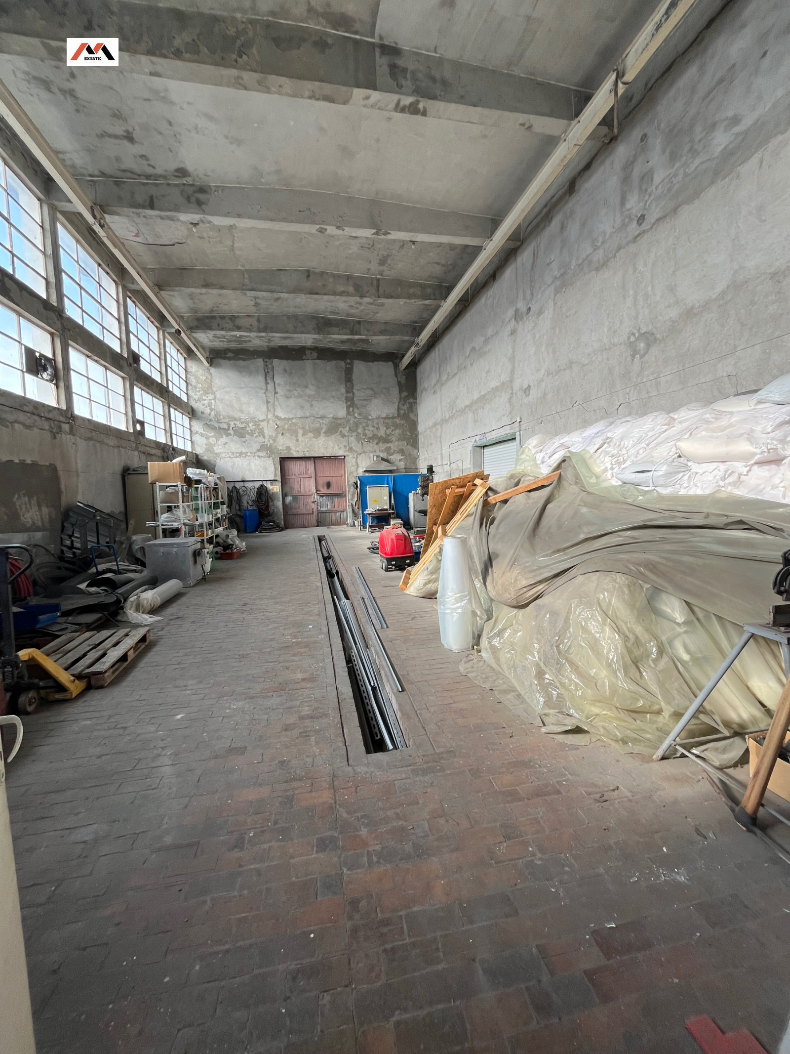 Двуетажна масивна сграда със сглобяема панелна конструкция, застроена върху противоатомно скривалище с РЗП 1014 кв.м. .В по- голямата си част сградата е обособена в пет учебни зали /кабинета, конферентна зала и др./Останалата част е приспособена за използване за производствени цели и представлява хале по цялата височина на сградата.Пода е изолиран с киселиноустойчиви плочки .Разполага със сервизни помещения , а именно 1 баня и две тоалетни.Противоатомното скривалище е монолитно стоманобетонова конструкция с дебелина на вътрешните стени 0,90 м. Пода е с циментова замаска. Имота разполага със собствен сондаж.Урбанизиран е за складова и каучукова промишленост.Разполага с проект за 70 Кw.Годината на построяването е 1973. Застроена площ-507 кв.м- промишлена база и 124 кв.м- складова база/сервизно помещение/ Авторемонтна работилница с цялостно оборудване /машина за боядисване на коли/Има три достъпа от един отюжната и два от северната страна/Има канализация РЗП- 1014 кв.м Площ Терен -2607 кв.м