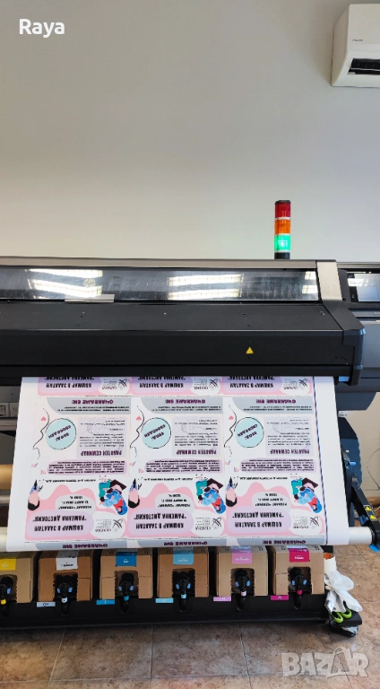 Машината редовно бива почиствана и поддържана и работи всеки ден. Може да се види в действие и да се направят тестове. Продава се заради ъпгрейд към най-новата машина HP Latex 830.