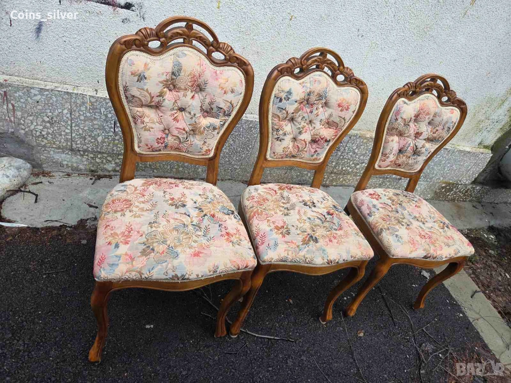 Продавам 3бр трапезни столове бароков стил,перфектно състояние без забележки,тапицерия,дърво супер състояние.
