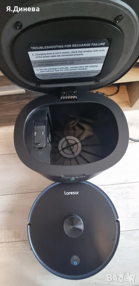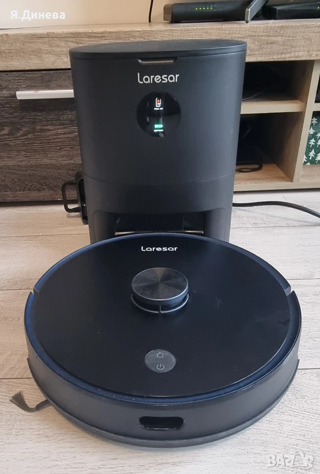 Продавам самопочистваща прахосмукачка Laresar L6 Pro. В добро външно състояние тествана е показва че се зарежда и чее заредена но когато я пусна тръгва прави един кръг и се връща на станцията. За смяна на батерията е, внос от Германия липсва й и торбичката за отпадъците.
