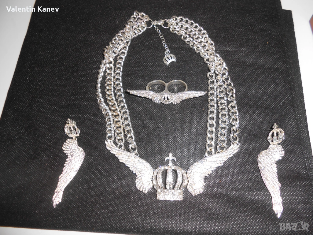 огърлица + 2бр. обеци+двоен пръстен .посребрени .финна изработка с хиляди камъни.Перфектна бижутерия.