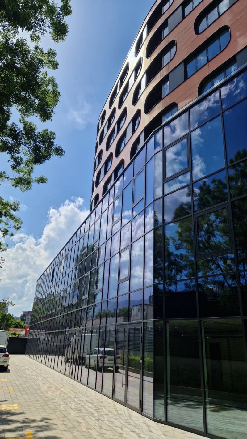 📍 Клас А офис сграда с впечатляваща фасада с хамелеон ефект (променящи се цветови нюанси), която създава скулптурно излъчване.