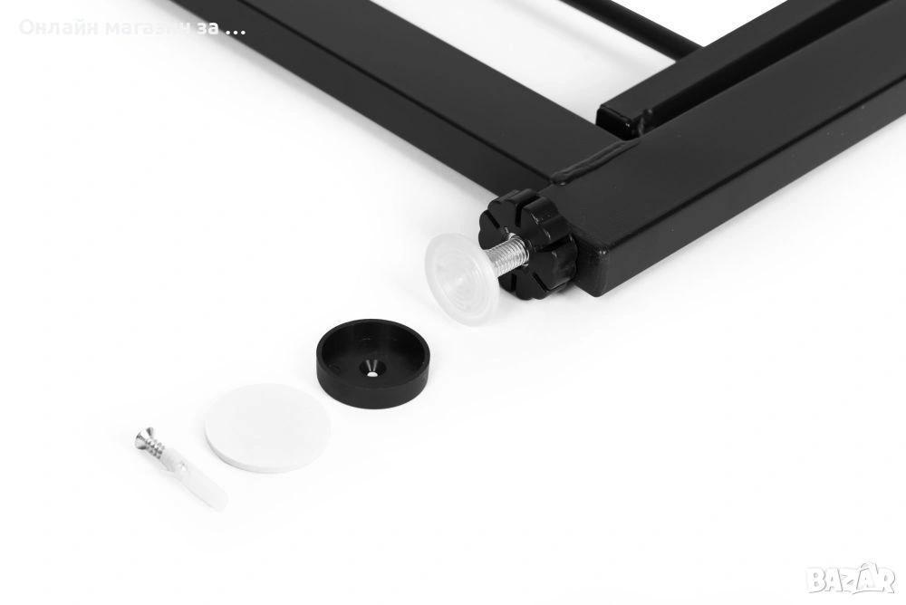 Ако обаче смятате, че мястото за монтаж изисква постоянно закрепване, можете да използвате специалните, контурни, включени шайби с малък отвор в центъра. Като ги закрепите към стената (винтовете са включени) на определеното място, можете да вкарате винтове в тях, които ще закрепят портата, като удължат цялата конструкция.