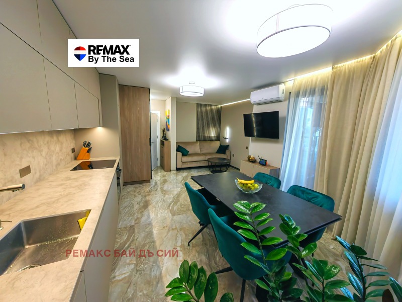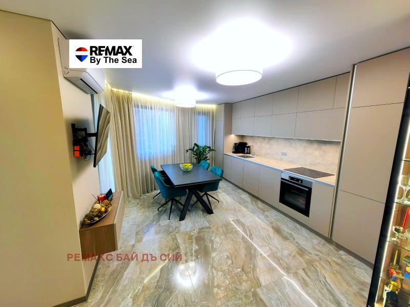 Жилището е луксозно оборудвано и обзаведено с висококачествени материали, мебели и техника: съдомиялна AEG, фурна и котлони Gorenje, 2 климатика Aux мултисплит система, пералня със сушилня AEG.