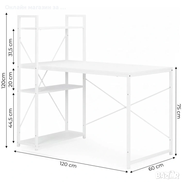 Компютърно бюро ModernHome, дървено, с рафтове за съхранение