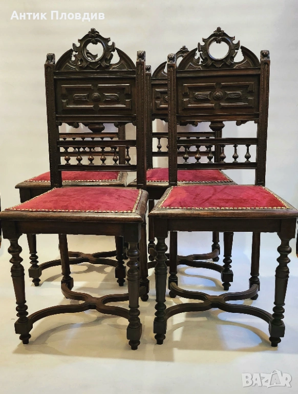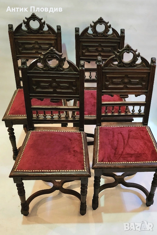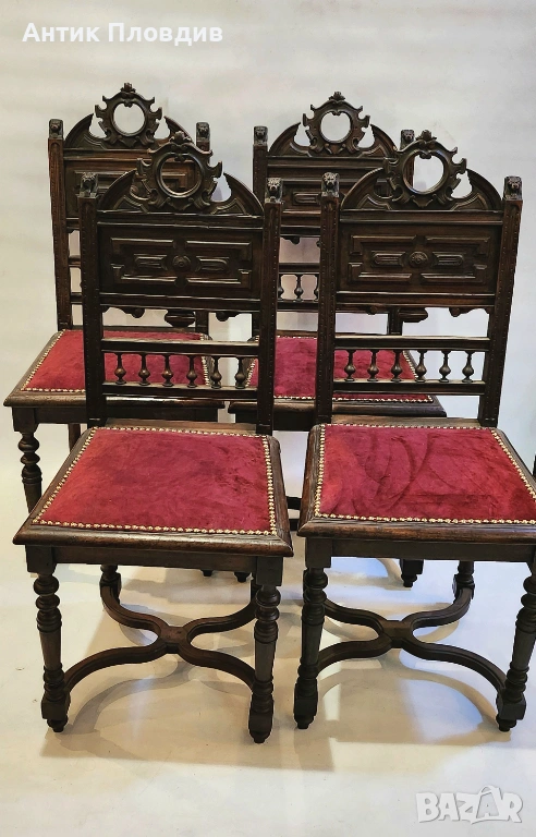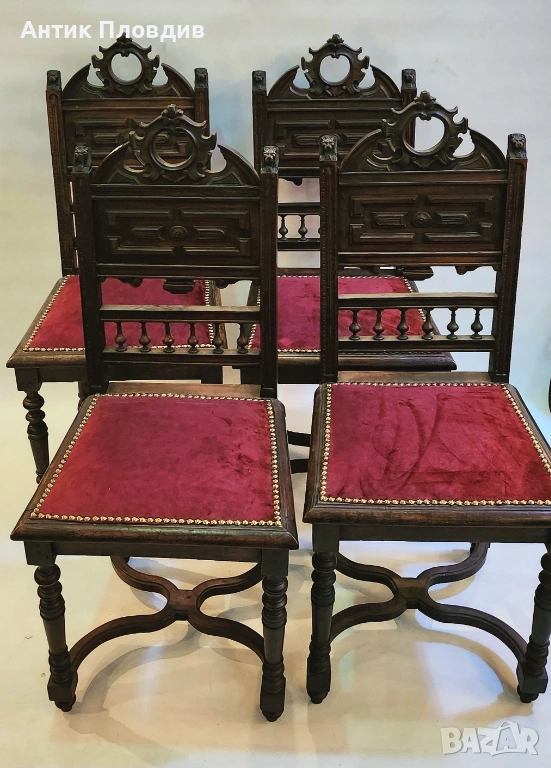Комплект от четири антикварни орехови стола в стил нео-ренесанс → Обява 53381062