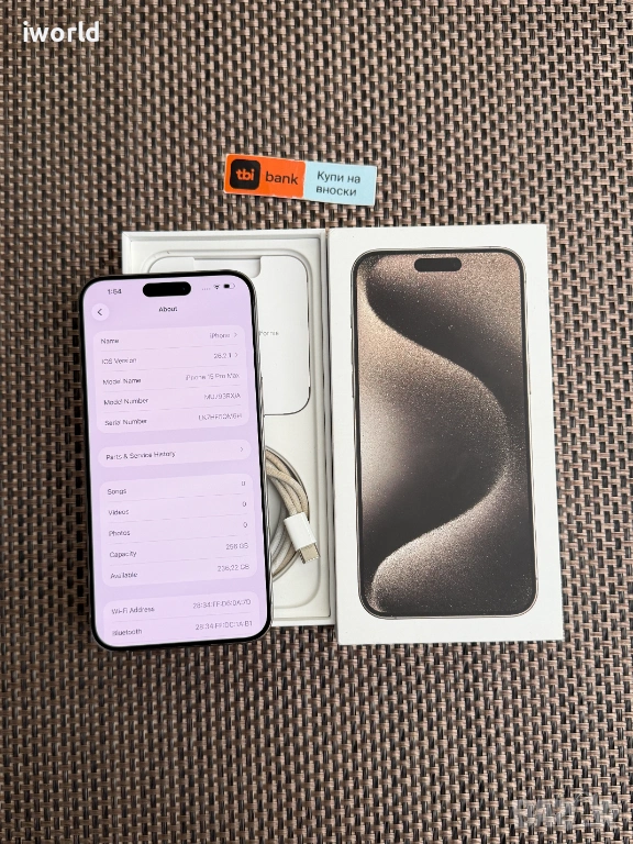 100% Батерия❗️ iPhone 15Pro MAX ❗️Лизинг от 27E/мес ❗️natural Titanium ❗️256GB → Обява 53381103