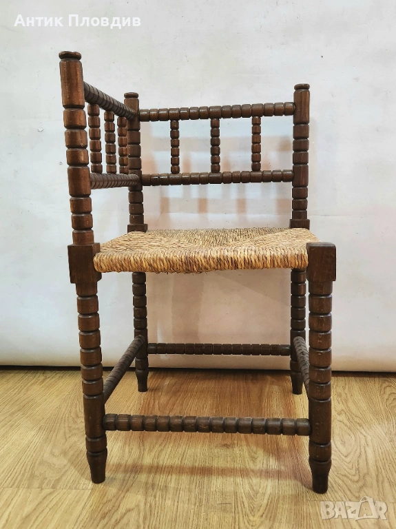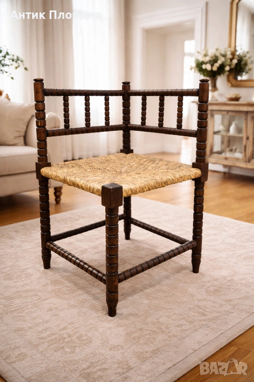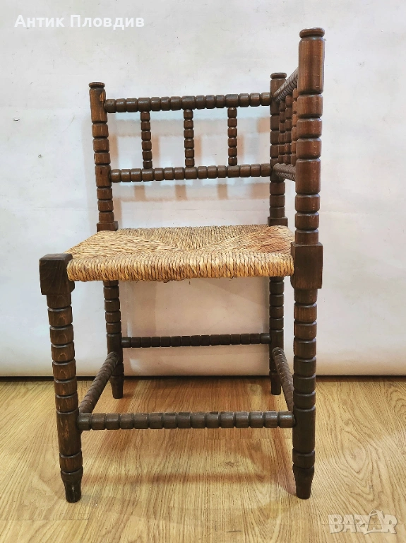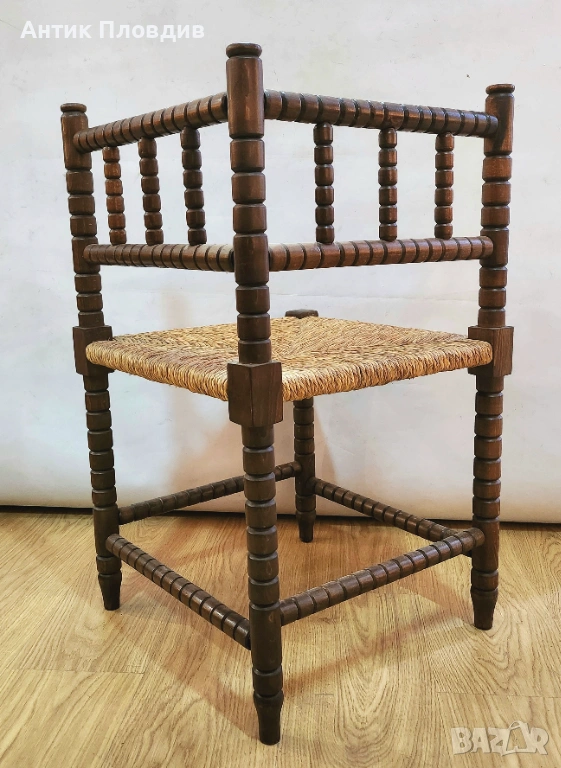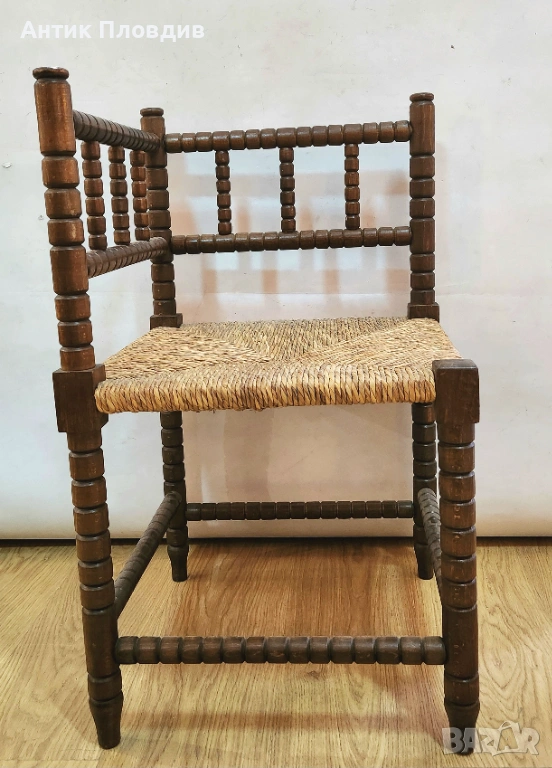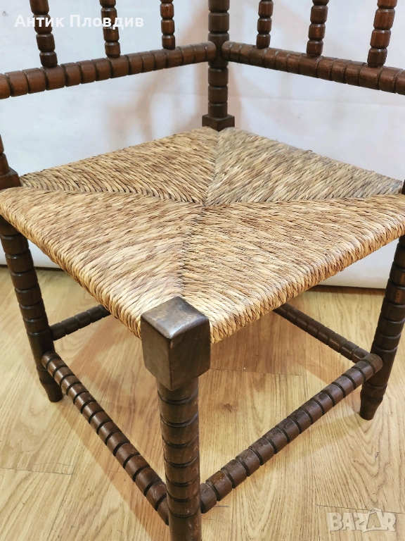 Френски ъглов стол от края на XIX век, изработен от масивно дърво с богато струговани елементи.