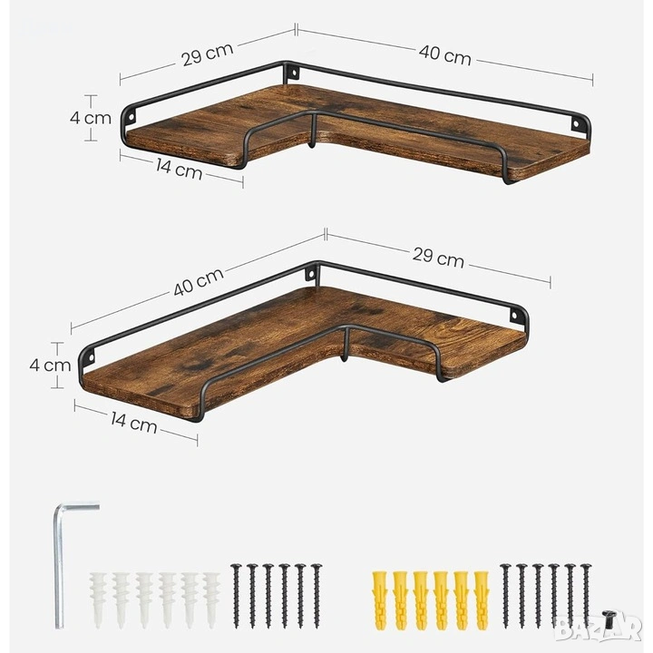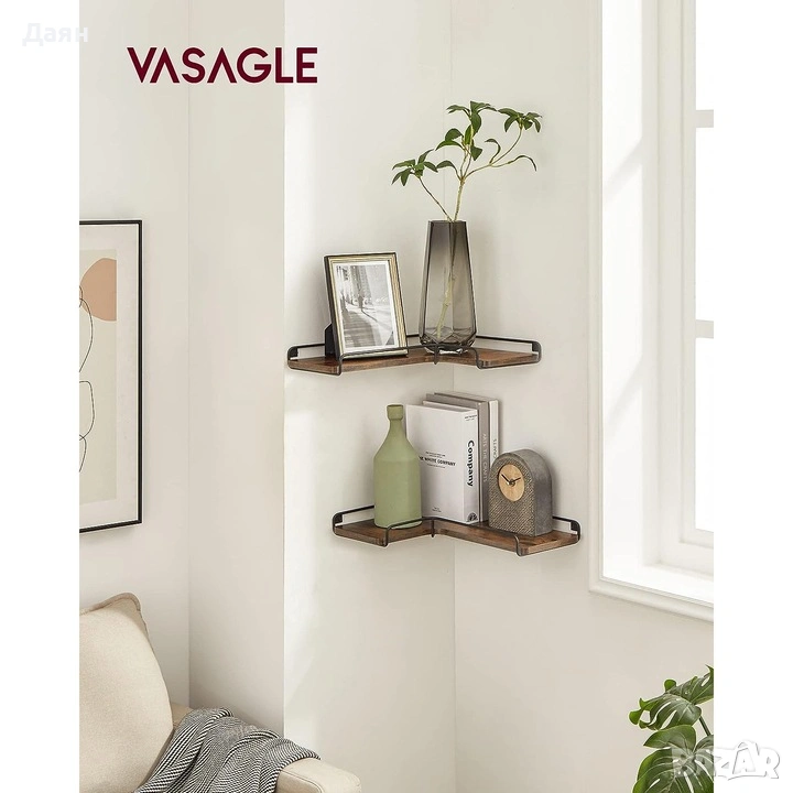 Комплект от 2 ъглови стенни рафта VASAGLE