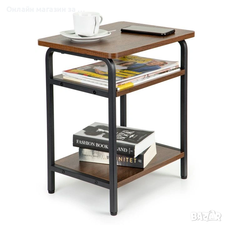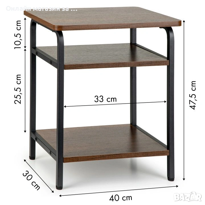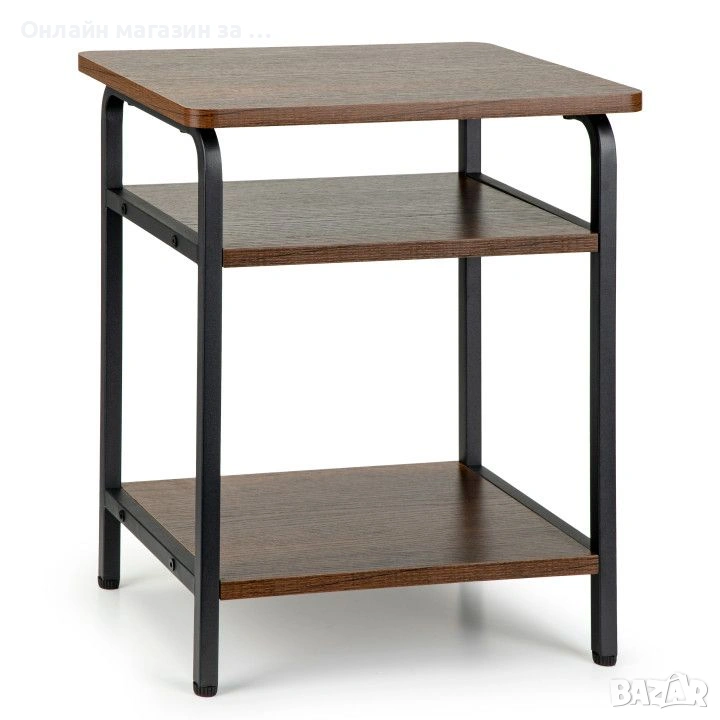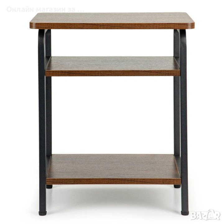 Модерна маса с изчистен дизайн в стил лофт, идеална за всекидневната, спалнята и други помещения, които се нуждаят от стилен акцент. Конструкцията й е на базата на метална рамка с прахово покритие, което гарантира стабилността и издръжливостта на мебелта. Плотът от МДФ е не само естетичен, но и водоустойчив, което го прави практичен избор за ежедневна употреба. Три нива осигуряват повече пространство за съхранение на малки предмети, книги или декорации. Масичката не само има функционално предназначение, но и добавя атрактивен декоративен елемент към интериора. Благодарение на универсалната си форма и цветова гама, тя се вписва добре както в модерни, така и в класически интериори.