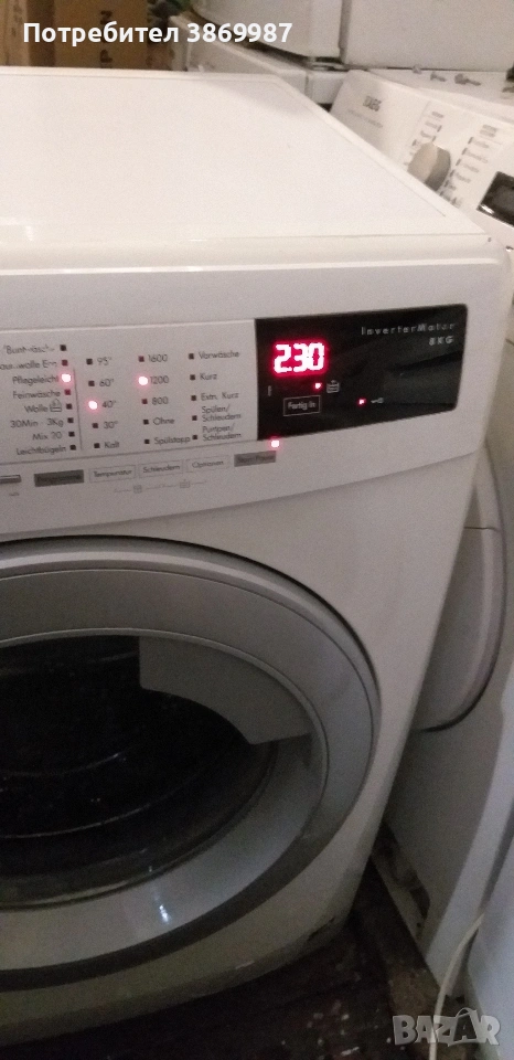 Продавам пералня AEG.Внос от Германия работи перфектно енергиен клас А +++ до 8кг пране.Инвенторен мотор,ел.дисплей,отложен старт опция за скъсяване на програмите.цена 140евро.Намира се в Ловеч