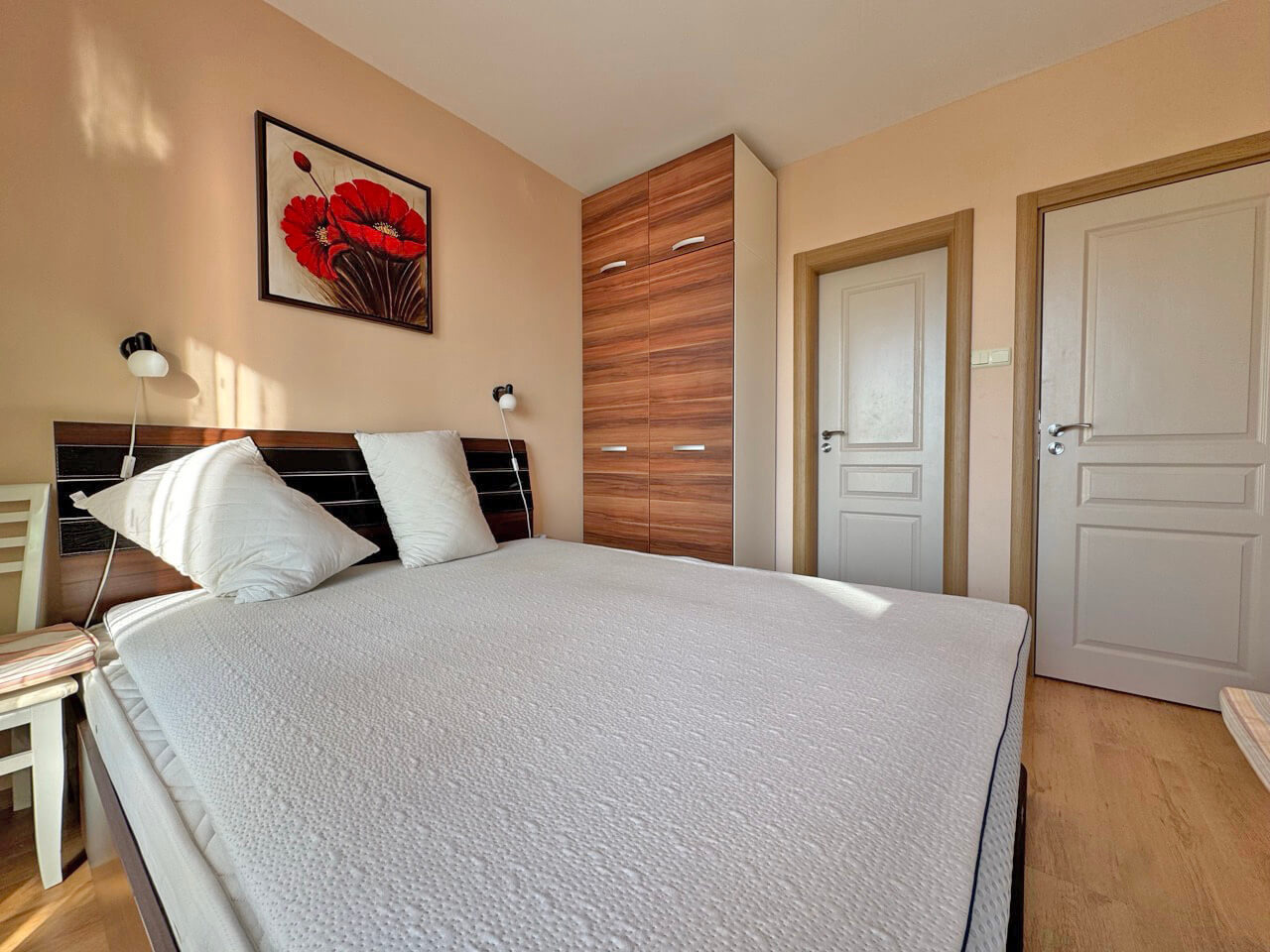 Предлагаме за продажба стилно обзаведен тристаен апартамент в луксозния комплекс Месембрия Палас , намиращ се в южната част на Слънчев бряг, на пешеходно разстояние от Несебър, само на 300 м от плажа. Апартаментът е разположен на терти жилищен етаж в шестетажна сграда с асансьор, и е с площ 79 кв.м. Състои се от дневна с кухненски бокс, кът за хранене и кът за отдих, две спални, коридор, 2 бани с душ кабина и тоалетна, тераса с изглед към басейна и красиво озеленената територия на комплекса. Продава се напълно обзаведен и оборудван. Комплексът предлага следните удобства: рецепция; външен басейн с олимпийски размери; външен детски басейн; ресторант с тераса; фитнес на открито; парк; открит бар; детска площадка и детски кът с аниматори; целогодишна охрана; дартс и тенис на маса; коли под наем; туристически услуги; паркинг. Акт 16 и битов ток. Разрешение за ползване. Апартаментът е изключително подходящ за живеене и отдаване под наем целогодишно.