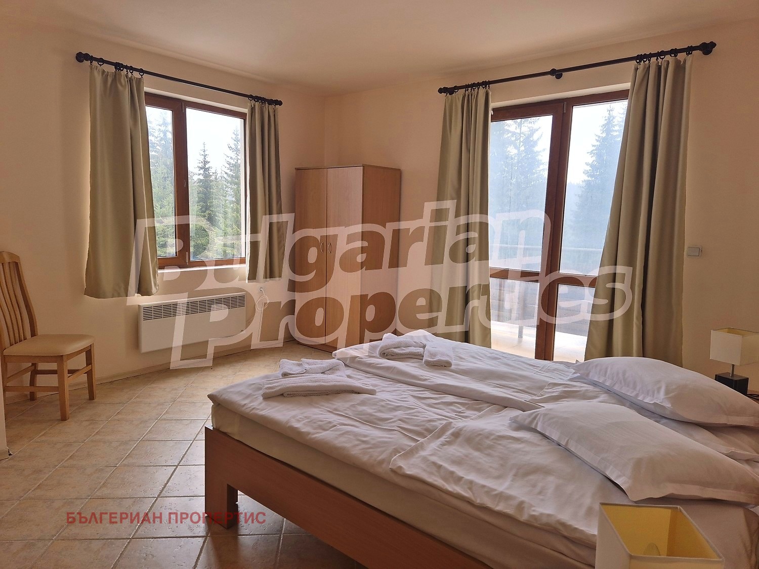 Жилището е в отлично състояние и се предлага с наличното обзавеждане, подбрано така, че да осигури уют и комфорт. Подовите настилки са с теракота, дограмата е ПВЦ, а отоплението е решено с електрически радиатори практично решение за планински имот.