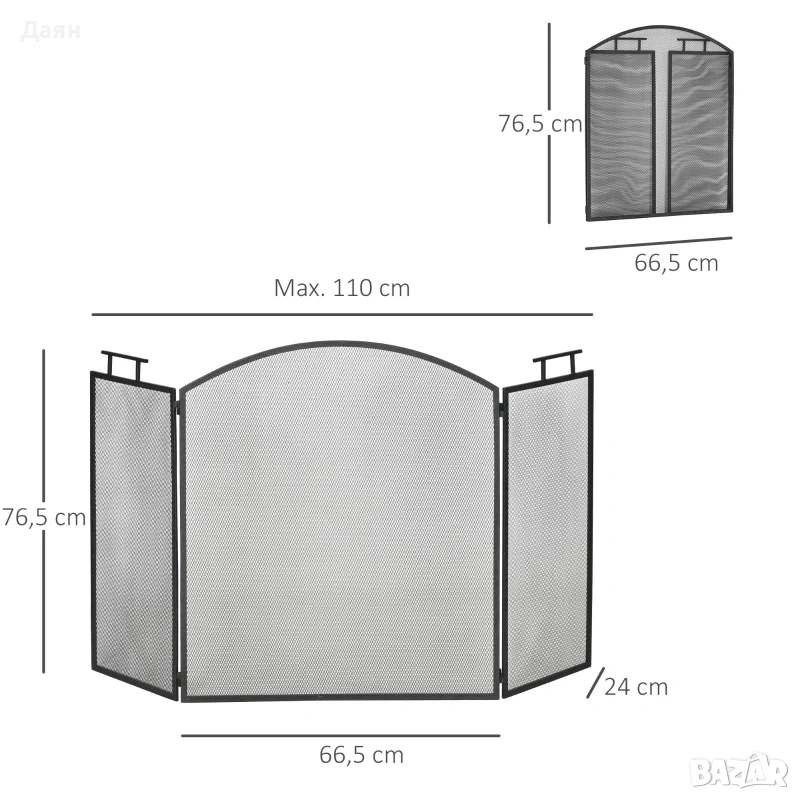 Защитен панел за камина HOMCOM 110x24x76,5см