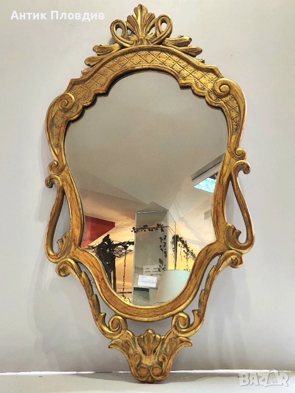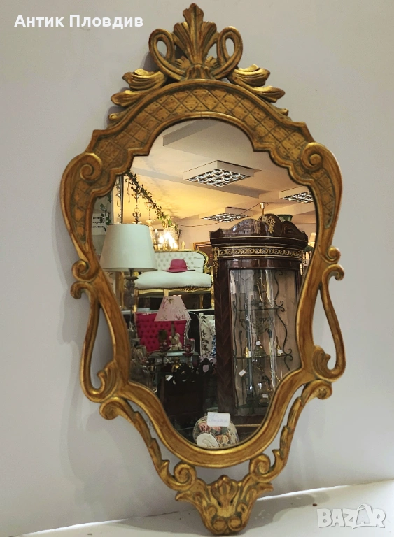 Елегантно стенно огледало с богато орнаментирана рамка в стил, вдъхновен от френската класика.